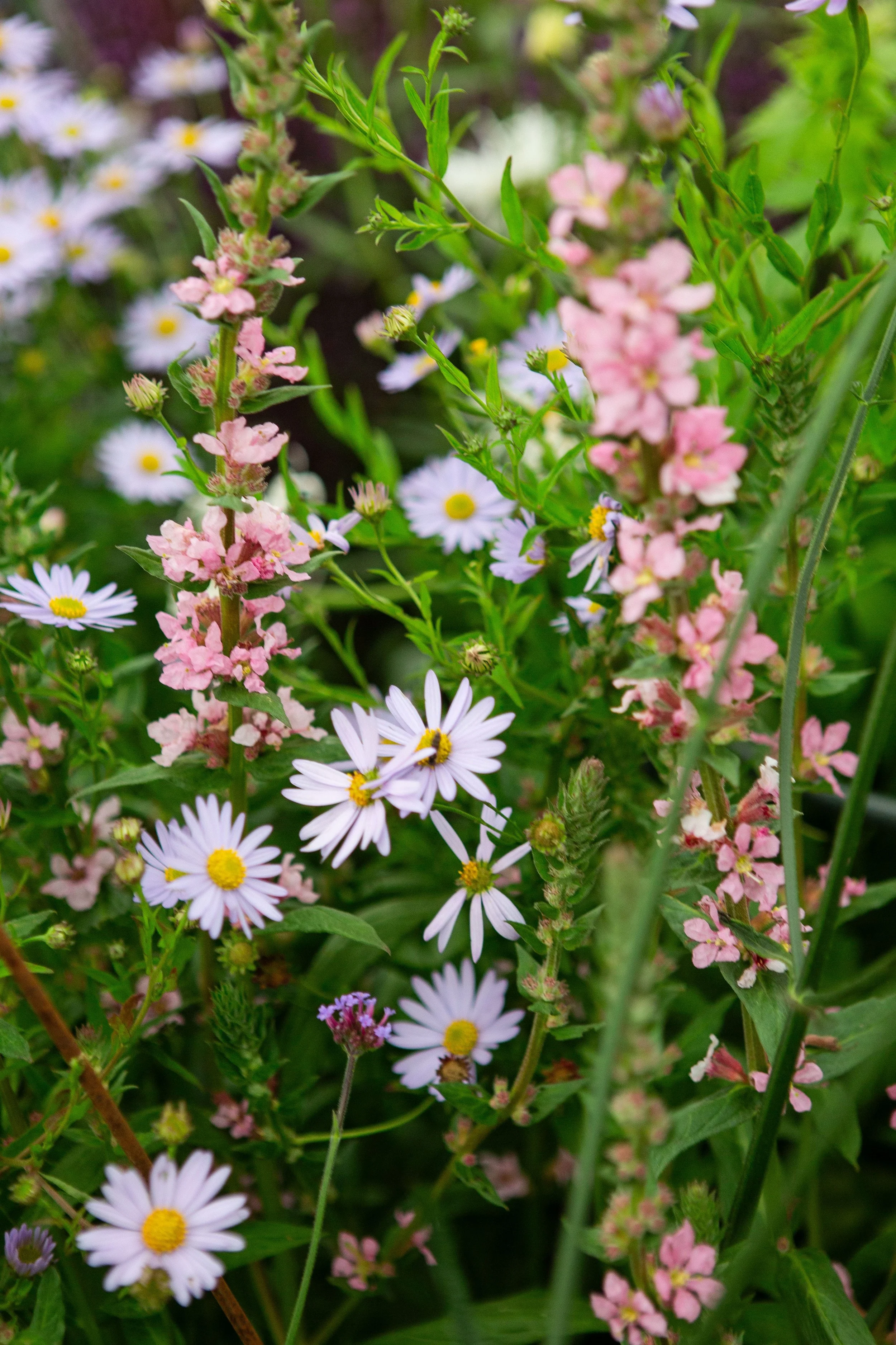 Acer, Azalea, Conifers, Actaea, Heuchera, Rodgersia, Japanese Anenome, Hakonechloa, Hosta, Ferns, Iris Ensata and Prunus (Cherry Blossom).