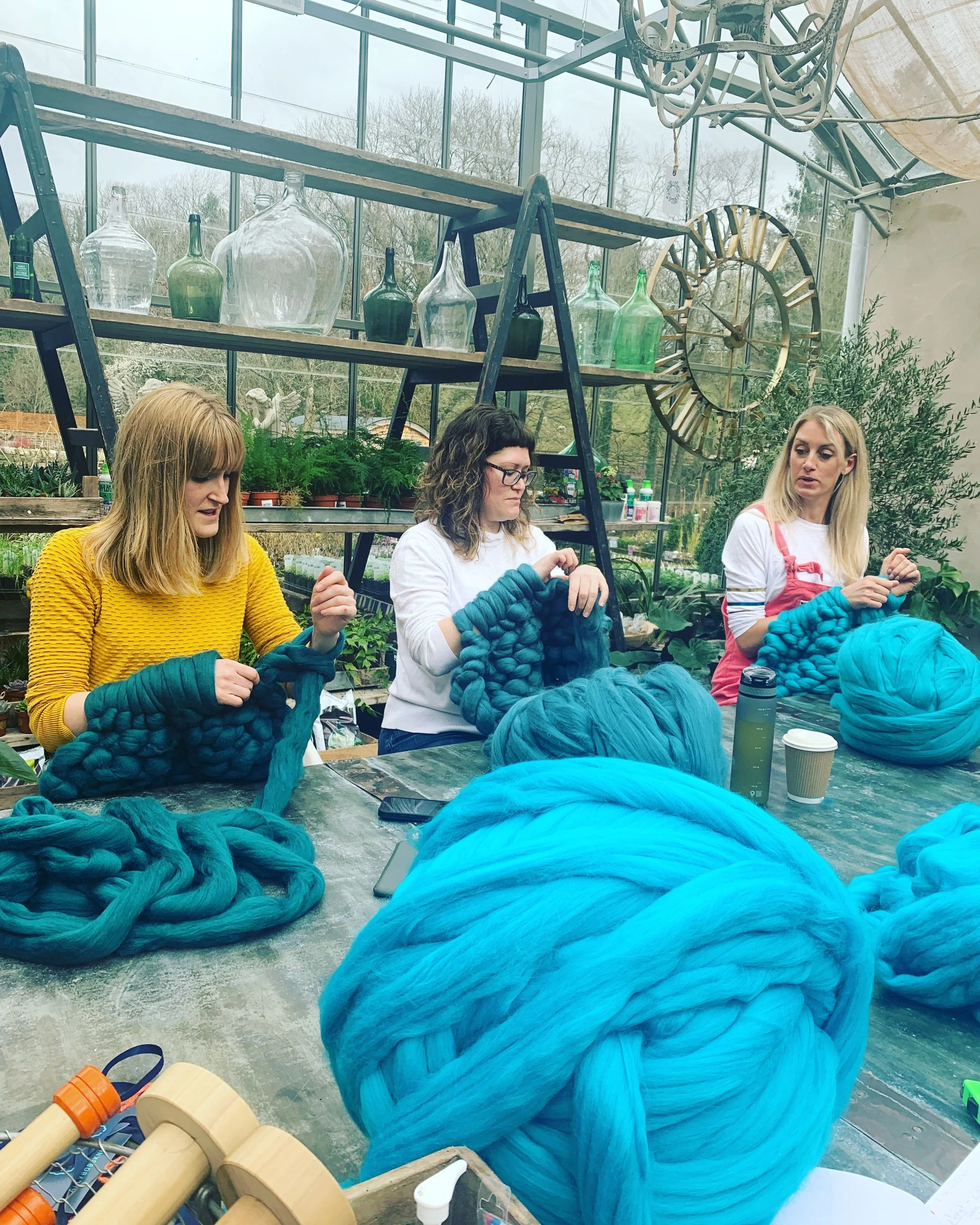 Get creative, have fun and learn a new skill by coming along to one of AllyBobsKnits popular chunky wool blanket arm knitting workshops.