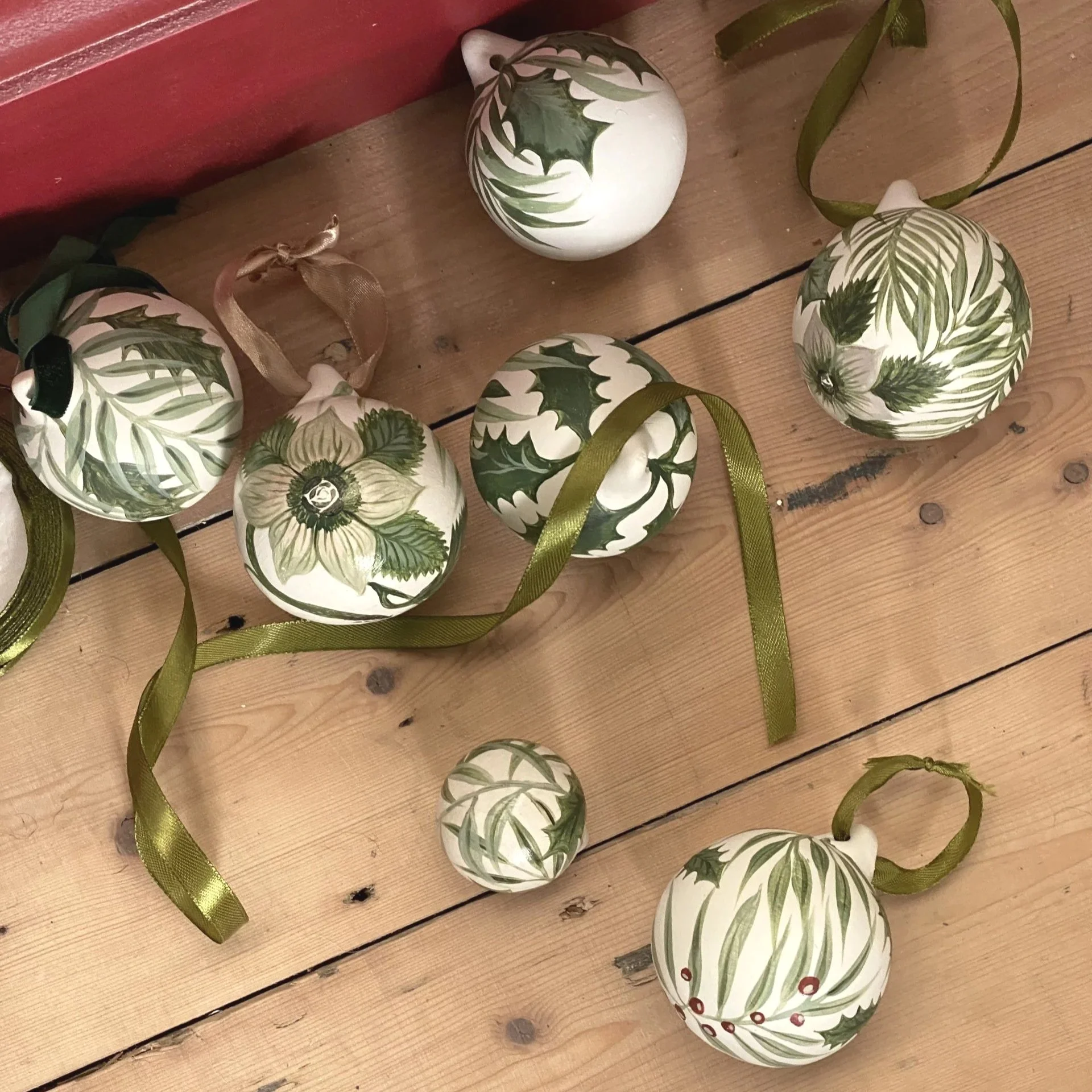 You’ll learn simple painting techniques and be inspired by festive design ideas & winter foliage to create your own hand painted baubles.