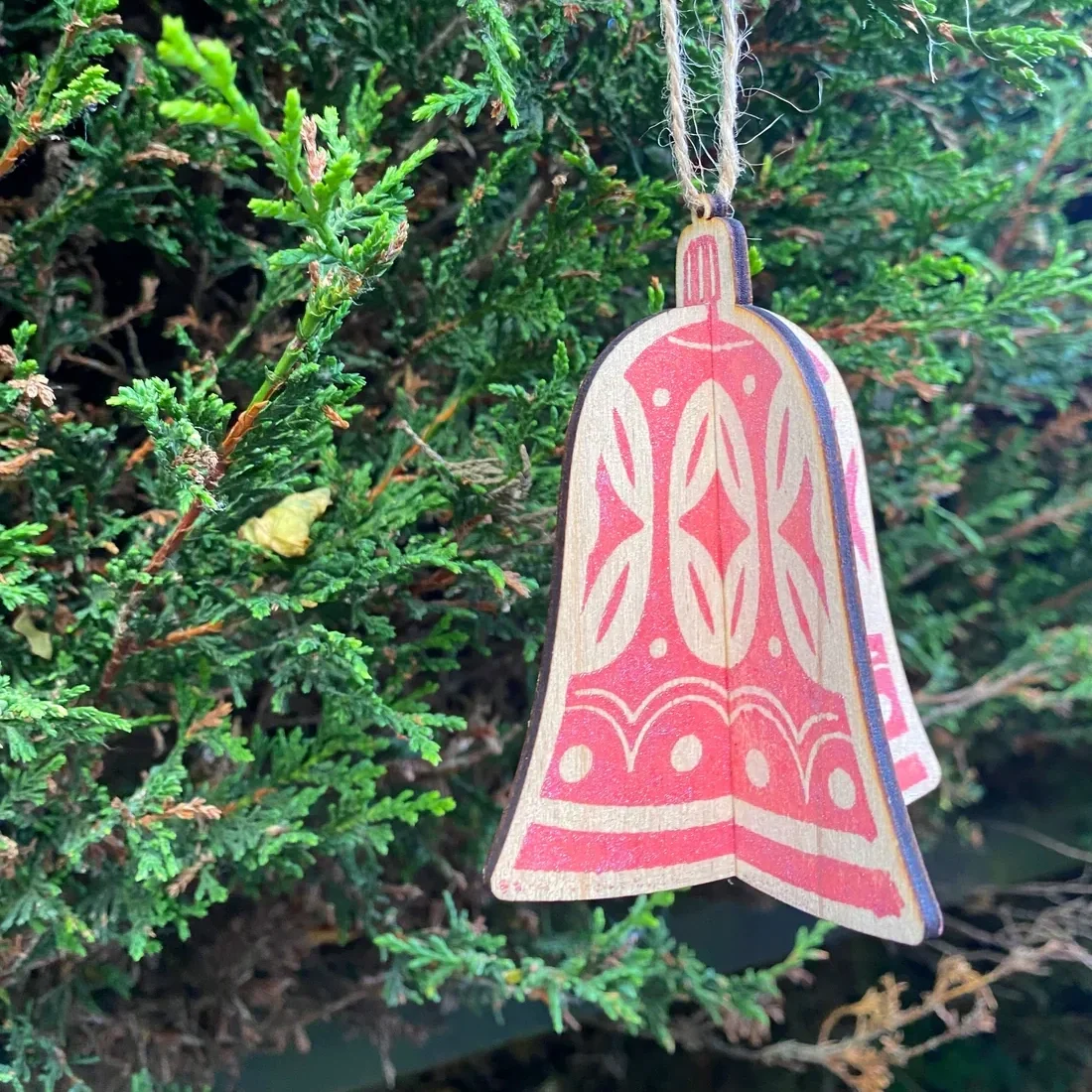 Carve patterns and shapes into lino and print onto a wooden two piece bauble, which slots together to become 3D.