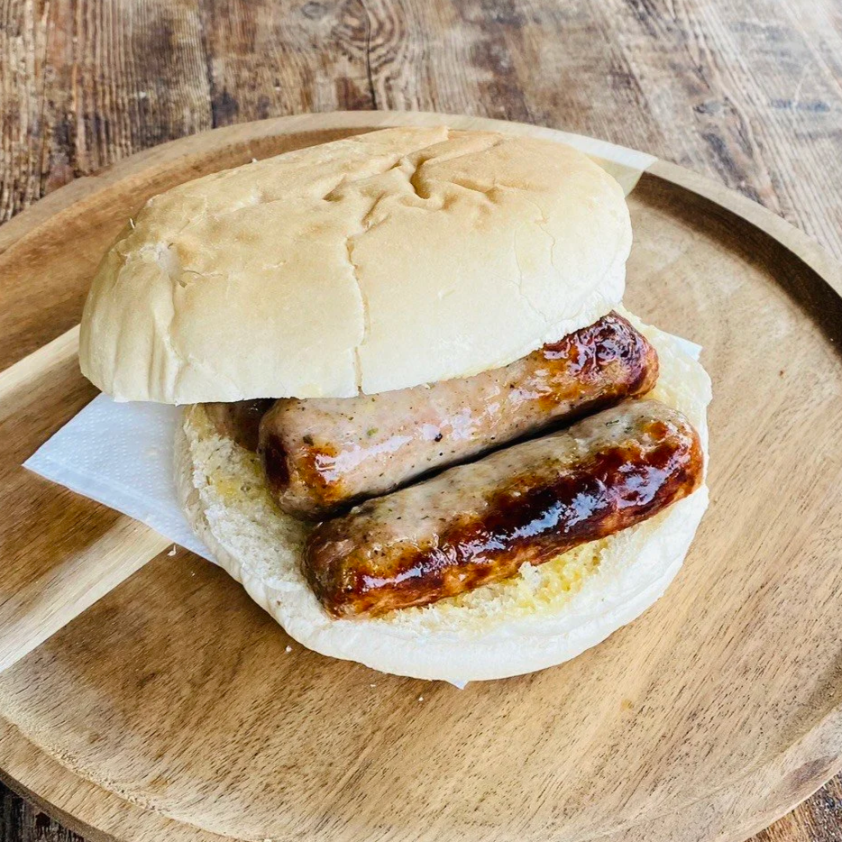 Choose from 2 Cumberland sausages, 3 slices of dry-cured bacon, or 2 vegan sausages on a soft roll.