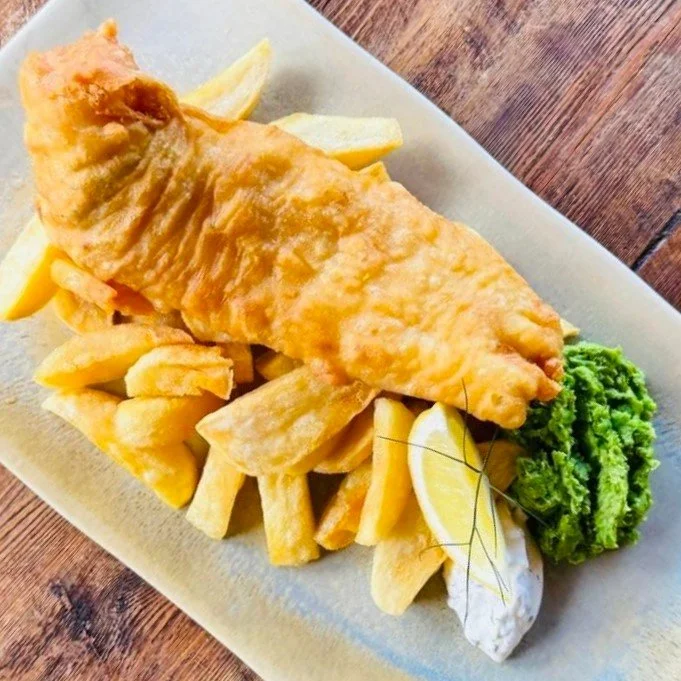 Think Fish Suppers, Light Crispy Battered Fish, Steak Puddings, Scampi, and of course Chips, Mushy Peas, Bread & Butter, and Gravy!